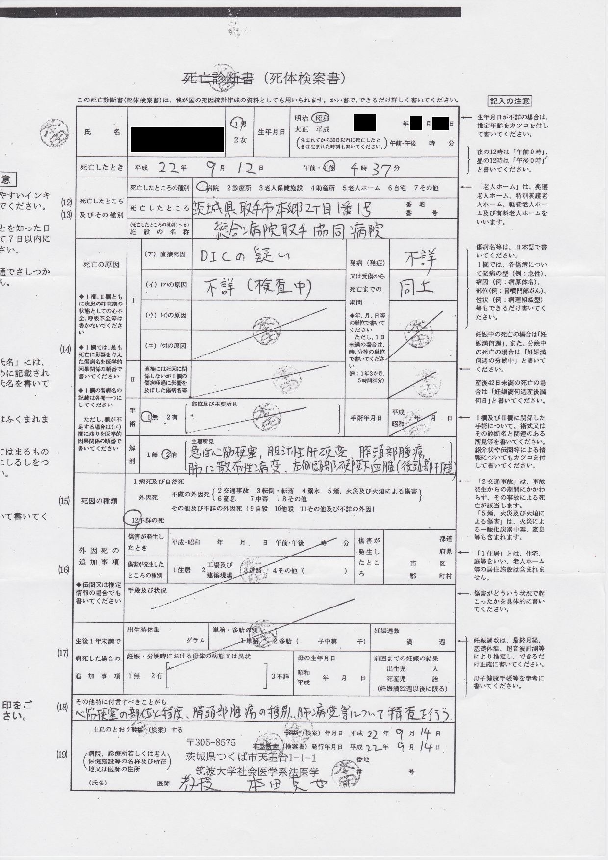これは、取手協同病院から死亡診断書が発行された決定的証拠です。